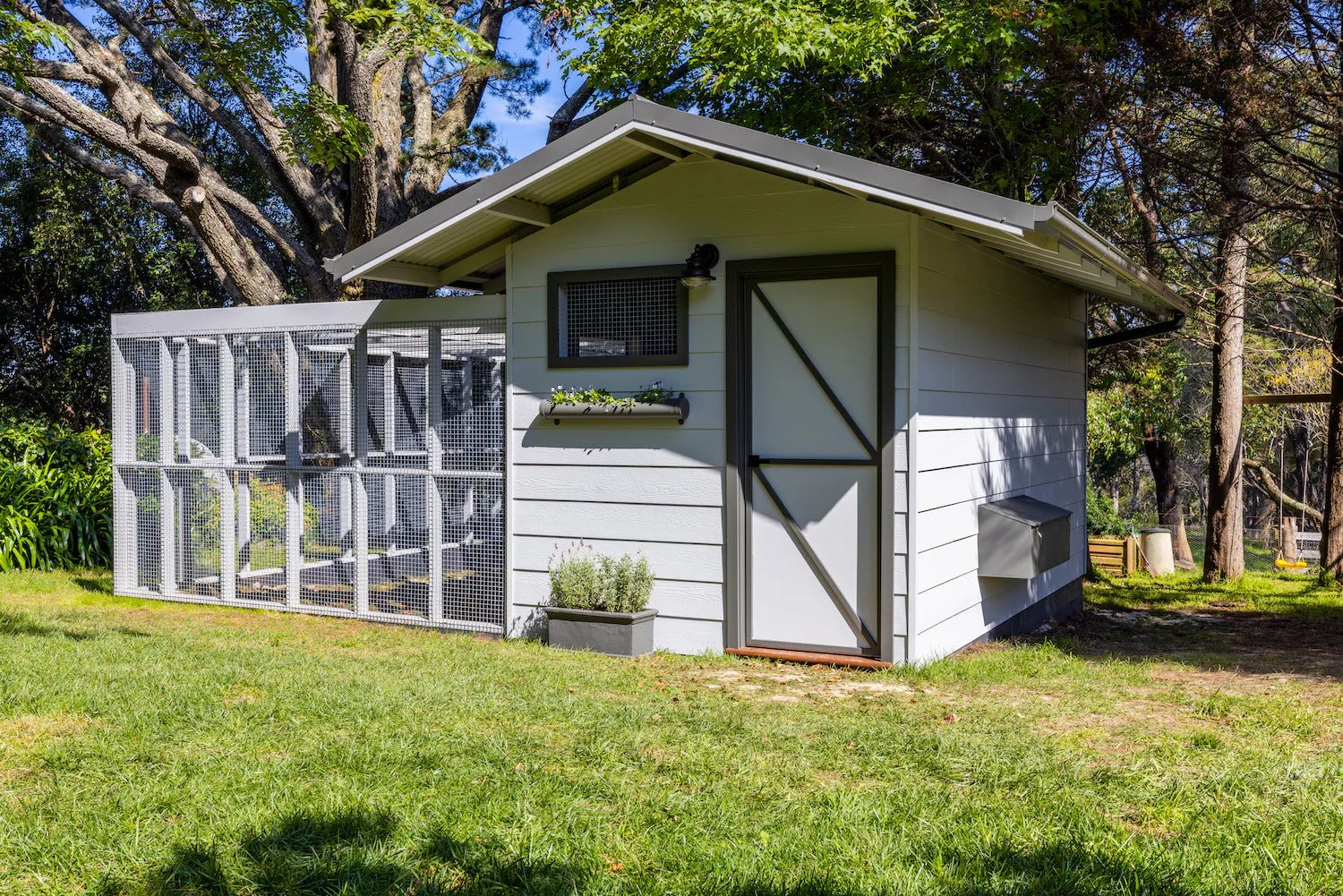 - You can add a wire mesh run to protect them in the daytime. It will also stop them digging up the garden and leaving poop everywhere!