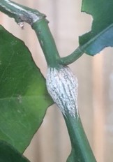 The citrus gall wasp is not fussy about which type of citrus it infects, so check them all. Do this by looking at the tops and bottom branches. If unsure whether a gall is forming, run your finger along the stem. If there is a slight bump and the cambium layer (bark) looks stripy that’s a gall. Keep your tree at a reasonable height and width so that it’s easy to check for galls.