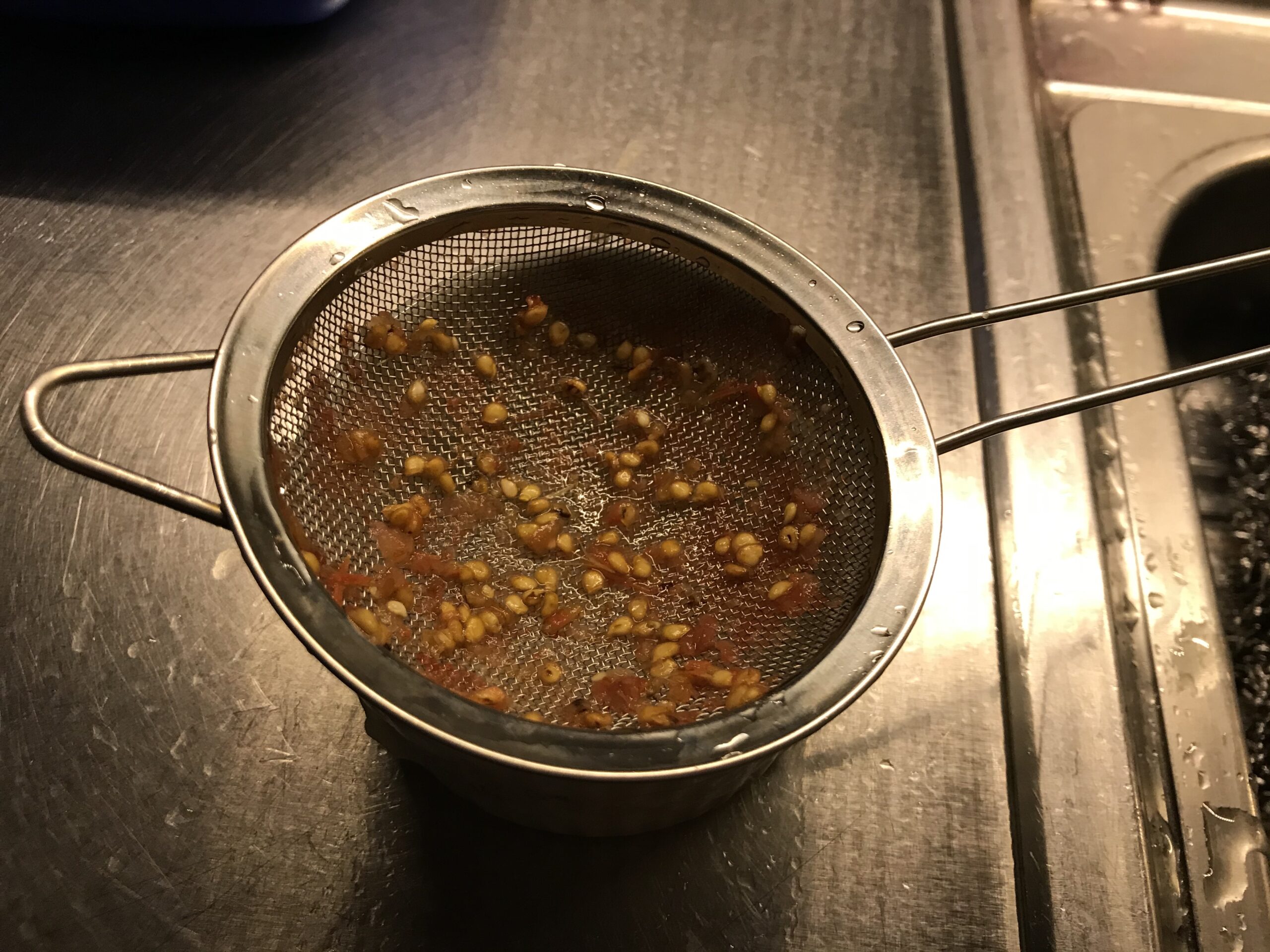Sieving is as simple as it sounds. Experiment with your kitchen sieve and colander or mesh like insect screens. Look for other gauges in op-shops to deal with seeds of different sizes.